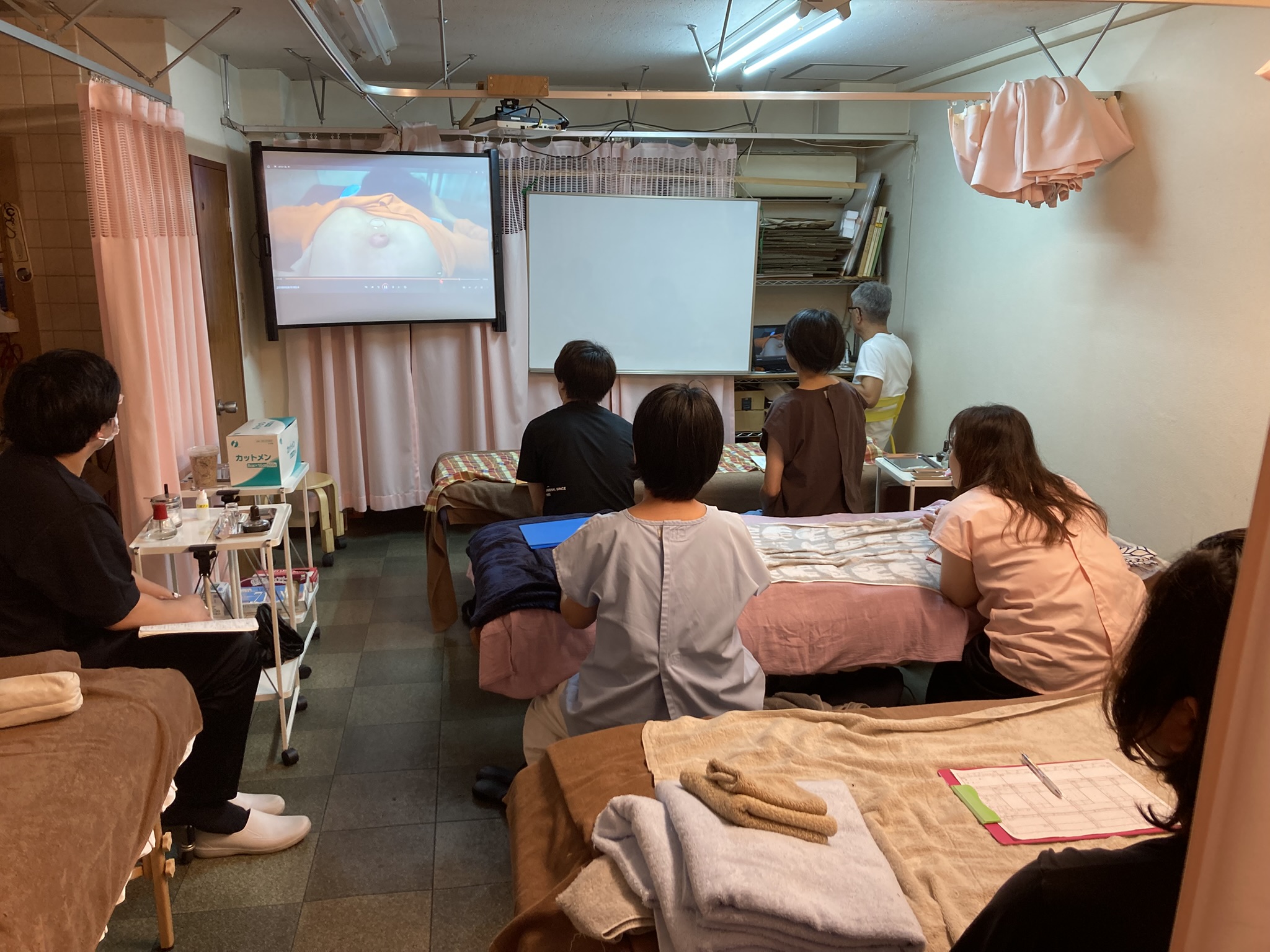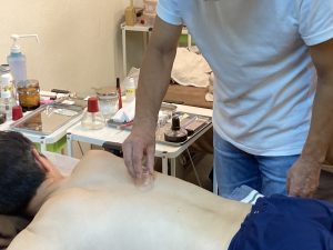 2025年度 応用2コース 後半3回目(第8回) 2025.10.26 11/18(土)に、応用2コースの8回目が行われました。 今回も站樁功の練習から始まり、お互いに基本治療をした後、事前に撮影しておいたビデオを準備し、注意点を説明しつつ、今日は、脊際の刺絡をしました。 脊際の触診は、圧痛がある部分や推して違和感がある場所や他の部分と感触が異なる場所を探すがポイントです。 すばやく吸角をかけます。刺絡した点が吸角の中央にくるようにするのがポイントです。 次回も、刺絡技術・吸角技術を磨きましょう!